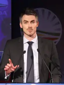 Tim Harris (born c. 1979) is a South African politician, a former Democratic Alliance member of the National Assembly, and a Parliamentary Counsellor to Mmusi Maimane, the Leader of the Opposition. He served as Shadow Minister of Finance from 2012 to 2014, and was succeeded by Dion George. A former chief of staff to party leader Tony Leon,[1] Harris was the party's national events manager during the 2009 general election campaign, and was subsequently elected to Parliament aged 29, initially to the National Council of Provinces where he served as the Western Cape's Provincial Whip before being moved to the National Assembly in a Shadow Cabinet reshuffle.[2] He has been characterised as the "sexiest man in politics".[3]