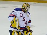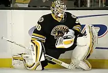 He was born in Flint, Michigan and is a graduate of Davison High School.[1][2][3] Thomas played college hockey for the University of Vermont for four years, from 1993–1997, during which he was drafted 217th overall by the Quebec Nordiques in the 1994 NHL Entry Draft. He played for several years in the minor leagues and Europe, before making it to the NHL at age 28, with the Boston Bruins. He finally emerged as the Bruins' starting goaltender at age 32. Thomas is a two-time winner of the Vezina Trophy (2009 and 2011) as the NHL's best goaltender, and was a member of Team USA in the 2010 Winter Olympics in Vancouver.[4] Thomas won the Conn Smythe Trophy as the most valuable player in the 2011 Stanley Cup playoffs. He was the oldest player in NHL history to win the award at age 37. Thomas is one of four American-born players to win the Conn Smythe Trophy, along with Brian Leetch, Jonathan Quick, and Patrick Kane.[5]