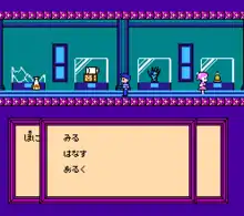 Like the Famicom Mukashibanashi games, all text in Time Twist is presented in hiragana, including names of non-Japanese objects, people, and countries, which would normally be written in katakana. The only sections of the game that contain katakana and kanji are the title screen and staff roll.