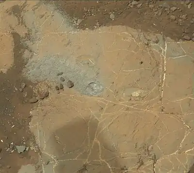 (drilled sample of "John Klein" rock, Yellowknife Bay, February 27, 2013).[83][84][85]