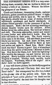 A writer at the Newberry Rising Sun of South Carolina aptly characterizes the forthcoming American Civil War from four years' distance