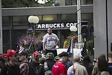 The Proud Boys and Joe Biggs, a Florida-based radio talk show host and former InfoWars staff member, organized an August 17, 2019 demonstration in Portland attended by members of several far-right groups.[85][86][87] The End Domestic Terrorism rally,[87] which was sometimes subtitled "Better Dead than Red",[88] was intended to promote the idea that antifa should be classified as "domestic terrorism". It received national attention, including a tweet from President Trump.[89][90] One day prior to the rally, Patriot Prayer's Joey Gibson, who had organized similar events in 2017 and 2018, was taken into custody on charges of felony rioting during a May 1, 2019 incident.[91] The Proud Boys organized the August event in response to a video that went viral of masked demonstrators assaulting conservative blogger Andy Ngo at a Portland rally on June 29, 2019.[91] The End Domestic Terrorism event drew more counter-demonstrators than participants—with at least one group urging its members in advance not to attend—and ended with the Proud Boys requesting a police escort to leave.[86]