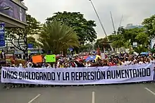 Protests in front of police at Altamira Square.