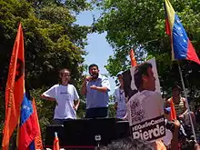 - 27 February – Students led by Juan Requesens protested against violence, detention and torture of students and the shortages in Venezuela, with Herique Capriles visiting, but not as a spokesperson.[106] The government issued an arrest warrant for Carlos Vecchio, a leader of Popular Will on various charges.[107] Medics in Maracay, Aragua state, protest against the condition of the hospitals in the state.[108] President Maduro decreed 27 February as "The Day of No Work in Venezuela" in respect for the fallen of the protests (that date was also the 25th anniversary of the historic Caracazo of 1989).[109]