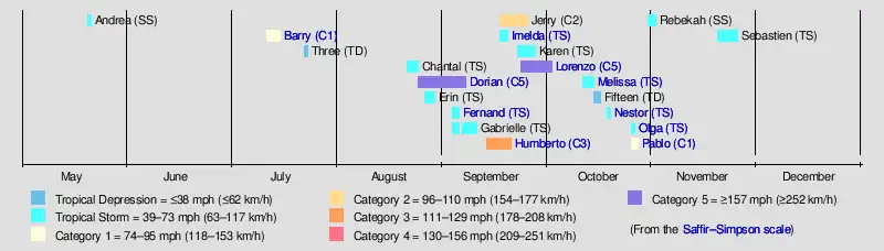| Timeline of the 2019 Atlantic hurricane season | |||||