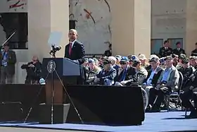 President Obama speaks to approximately 10,000 attendees at the Normandy American Cemetery, June 6, 2014