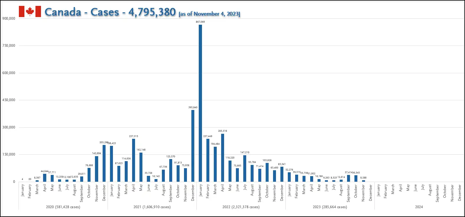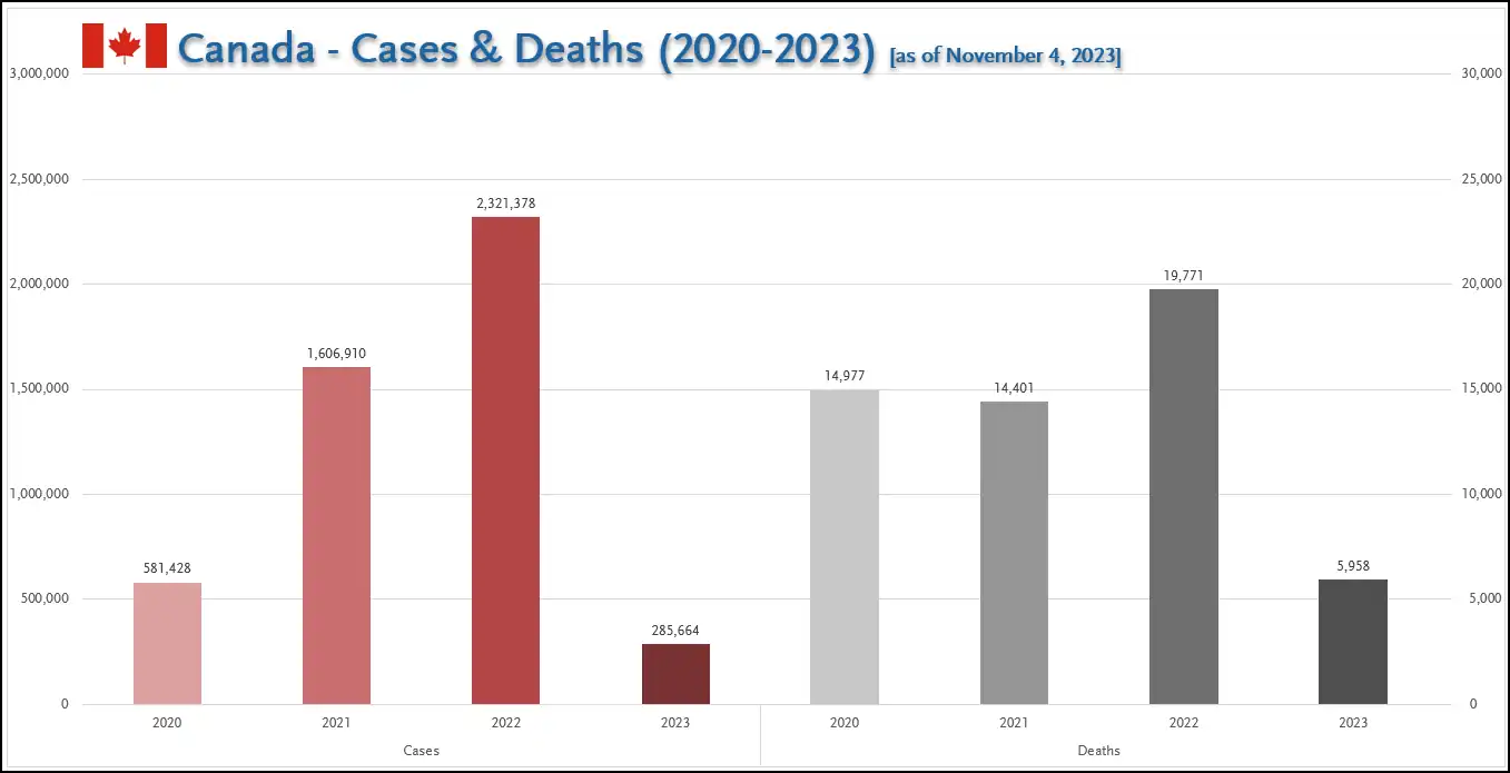 | Province / Territory | Total cases | New cases in 2020 | New cases in 2021 | New cases in 2022 | New cases in 2023 | ||||