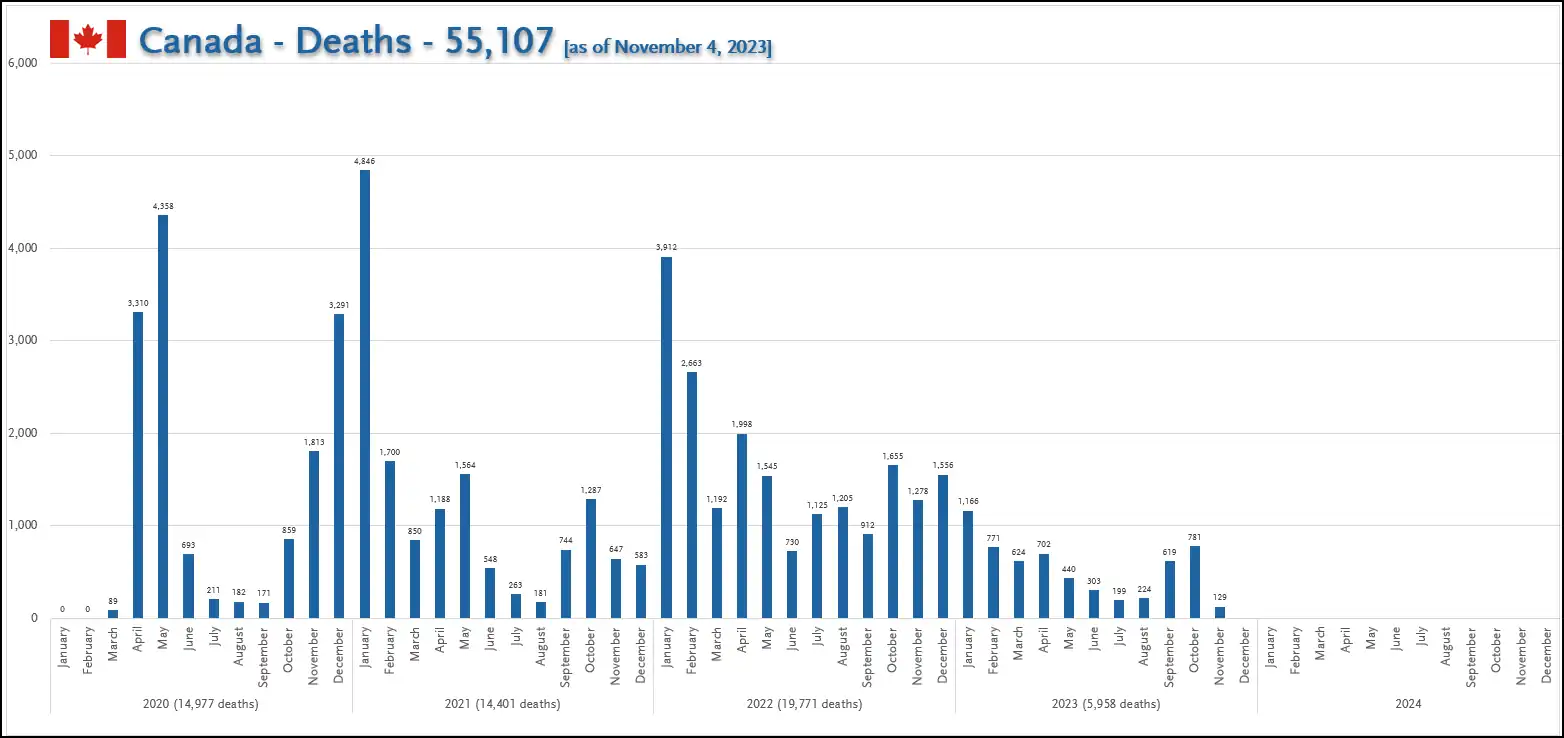 | Province / Territory | Total deaths | Deaths in 2020 | Deaths in 2021 | Deaths in 2022 | Deaths in 2023 | ||||