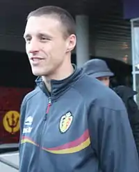 Timmy Simons (born 11 December 1976) is a Belgian former professional footballer who played as a defensive midfielder. He was known for his tireless work ethic and penalty-taking ability, having scored 48 competitive goals through penalties, missing only 5.[1] In 2012, at age 36, Simons was both the outfield player with the most minutes and the most kilometres in the Bundesliga.[2] Simons' former clubs include Lommel, Club Brugge, PSV Eindhoven and 1. FC Nürnberg. He captained both Club Brugge and PSV Eindhoven, and won the Belgian Golden Shoe in 2002 while playing for Club Brugge.