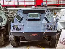 The Vickers Mk.11 Viper was a wheeled fire support vehicle, capable of carrying infantry and intended to carry out reconnaissance and long-range patrols.[16] The first prototype was derived from the Timoney CM-31 6x6 armoured personnel carrier with the front-end of the Valkyr fire-support variant. The second prototype was believed to have been built by Vickers at their facility.[17] The vehicle was fitted with the turret from Vickers Mk.5 (VFM5) light tank mounting a fully-stabilised L7 105 mm gun. The Vickers Mk.11 had a crew of four and could carry 7 dismounts and there were firing ports for troops to fire their individual weapons. A family of variants derived from the Mk.11 were planned including ATGM carrier, 120 mm mortar carrier, SPAAG, enlarged APC that could carry up to 19 troops, command vehicle, armoured ambulance, logistics vehicle, and recovery vehicle.[16] The platform failed to garner any export sales and with Vickers acquisition of Reumech to form Vickers OMC (now Land Systems OMC) the Mk.11 program was cancelled and the second prototype sold to a private collector.[17]