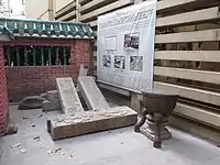 Hoi Shum Temple (海心廟; 'temple in the middle of the sea') Built in 1845 for the worship of Tin Hau. It was demolished in the 1980s when the Typhoon shelter was reclaimed. Some of the temple pillars and footing stones are now preserved in the Shau Kei Wan Shing Wong Temple. |