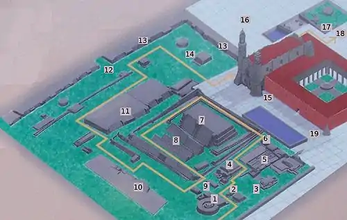 - The Palace. It is a structure composed of four small rooms with a central courtyard and an altar, as well as Remains of a wide portal.