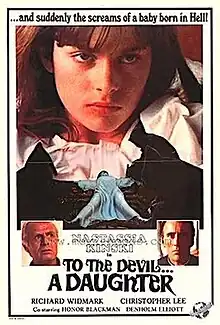 To the Devil a Daughter, sometimes stylized as To the Devil... a Daughter,[4] is a 1976 horror film directed by Peter Sykes and starring Richard Widmark, Christopher Lee, Honor Blackman, Nastassja Kinski, and Denholm Elliott. Based on the 1953 novel of the same name by Dennis Wheatley, it follows an American occult researcher in England who attempts to save a young girl preyed upon by a Satanic cult led by a fallen Catholic priest.