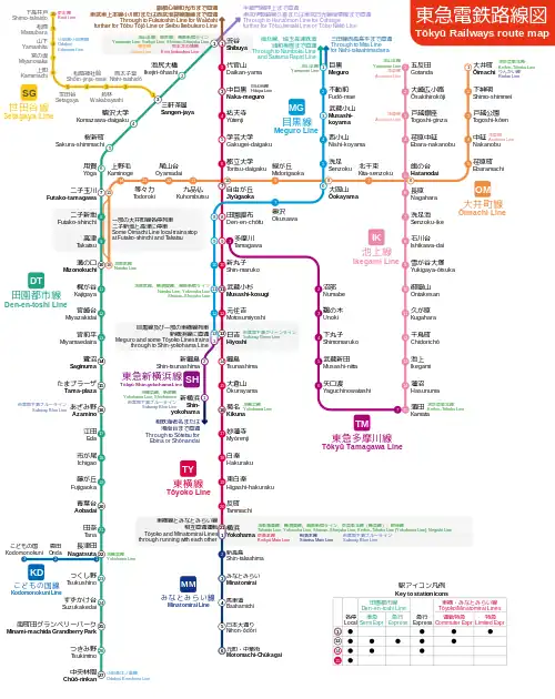 | Tokyu, Tōkyū Dentetsu, Tōkyō Kyūkō (before 2006), TKK (from Tokyo Kyuko Kabushikigaisha) | |