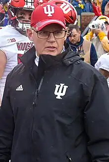 Thomas E. Allen (born March 14, 1970) is an American college football coach. He most recently served as the head coach of the Indiana Hoosiers football team until being fired on November 26, 2023, after 7 seasons. He was named the 2020 Big Ten Coach of the Year and AFCA Coach of the Year. Allen previously served as the defensive coordinator at Indiana and South Florida. He spent time as an assistant at Ole Miss, Arkansas State, and Drake, among other programs. A native of New Castle, Indiana, Allen also spent six seasons as defensive coordinator and three seasons as the head football coach at Ben Davis High School in Indianapolis.
