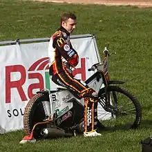 In 2010, he joined National League speedway team Dudley Heathens, and continued to haves success in grasstrack, winning the British Under-21 Championship.[2] After a successful first season is speedway, at the end of which he was voted 'rider of the year' by Heathens fans, he re-signed for the team in 2011, winning the National Shield with Heathens later that year.[2][3] At the end of the season he was awarded a Darren and Sharon Boocock Speedway Scholarship which saw him travel to Australia to gain experience racing in Queensland.[4]