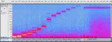 • 15 sinewave tones, all but the last 0.127 seconds in length (with 0.023 seconds of silence between tones), of the following estimated frequencies: 50, 100, 250, 400, 640, 1010, 1610, 4000, 6350, 8100, 10100, 12600, 15200, and 18300 Hz, followed by 130ms of silence then 820ms of a 15200 Hz tone.[4] (used by EMI Canada in 1982 as SDR)
