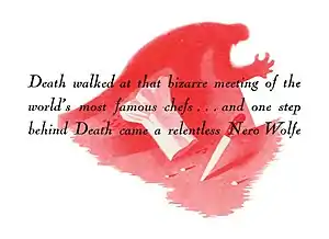 - Clifton Fadiman, The New Yorker — Nero Wolfe, bigger and better than ever, is a guest of Les Quinze Maîtres, a society of world famous chefs, at a West Virginia spa. As murder is Mr. Wolfe's business, the polite chefs oblige. By far the best and funniest of Mr. Stout's books.[10]