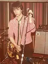 "Chatterbox" is written and sung by Thunders, whom Willis felt "uses his voice as a wailing instrument" in a manner similar to rock singer Robert Plant.[26] The song is Thunders's first time singing lead and features vocals Weisbard and Marks said are delivered in a quavering but proud New York accent.[21] His lyrics describe the narrator's growing frustration over a crossed-wire phone connection with a female subject.[27] On "Human Being", an ode to self-respect and personal liberty, Thunders introduces his guitar playing with a roughly performed variation on Bill Doggett's 1956 song "Honky Tonk".[28] Johansen addresses critics of the band in the song, telling them if they find him objectionable they should instead find themselves "a saint", "a boy who's gonna be what I ain't", and a "plastic doll with a fresh coat of paint who's gonna sit through the madness and always act so quaint".[29]