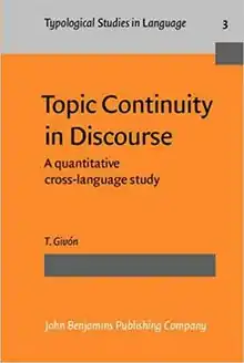 Topic Continuity in Discourse—subtitled A Quantitative Cross Language Study—is a book edited by Talmy Givón, with contributions by himself and other experts in various languages. It is part of the series Typological Studies in Language (a supplement series to the academic journal Studies in Language) and was published by John Benjamins in 1983.