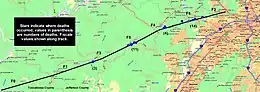 ![]() Tornado track of the Jefferson County F5 tornado. | |