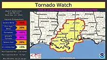 - ↑ John Hart (December 14, 2022). "Particularly Dangerous Situation (PDS) Tornado Watch 588". Storm Prediction Center. Retrieved December 14, 2022.