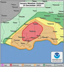 - ↑ Brynn Kerr; Andrew Lyons (December 14, 2022). "Dec 14, 2022 0600 UTC Day 1 Convective Outlook". Storm Prediction Center. Retrieved December 14, 2022.