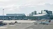 The terminal was substantially renovated in late 2015 to serve as a dedicated terminal for incoming government-sponsored refugees of the Syrian civil war.[45] Further renovations were completed at the Infield Concourse in early 2018 and on June 5, 2018, the terminal was reactivated for summer operations by the GTAA to act as an extension of Terminal 3 with the purpose of providing required additional bridged gates. Passengers are transported by bus between Terminal 3 and the IFC.[41] Effective December 2019, Sunwing Airlines moved their operations from Terminal 3 to the IFC.