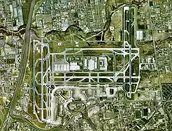 ![]() FAA airport diagram from 2004, which shows the old Terminal 1, the then-new Terminal 1, the former Terminal 2, Terminal 3, and the Infield Terminal | |||||||||||||||||||||||||||