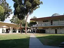 The Long Beach earthquake (magnitude 6.4) on March 10, 1933, left its mark on the campus. The quake destroyed the upper part of the original auditorium and caused the ground near it to sink several feet. The area was nicknamed the "Sunken Garden" until rebuilt. The landmark auditorium replacing it was built in 1937 as a Works Progress Administration project while the elevated administrative offices were added in 1962.[9]
