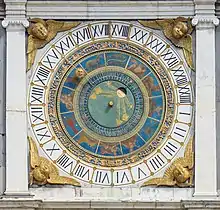 The clock visibly predates the Gregorian calendar reform in 1582 that suppressed ten days of the previous calendar: the position of the spring equinox is set to 11 March instead of 21 March.[4]