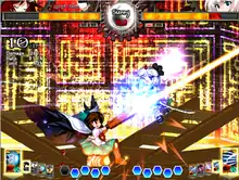 Cards fall into three categories: System Cards, Skill Cards, and Spell Cards. System Cards include bombs (like in Immaterial, knocks the enemy back), weather change, and other miscellaneous options. Skill Cards upgrade special attacks to do more damage, allow the player to gain alternate special attacks, or both. Spell Cards are powerful attacks that automatically work once activated. Proper assembly of card decks according to the player's style is key to mastering the game, since the decks limit what the characters can do during a match.