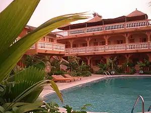 A modern tourist hotel catering to Europeans in the resort town of Saly.