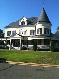 Tower House, also known as Edgewater and Marsland-on-the-Potomac, is a historic home located near Alexandria, in Fairfax County, Virginia. The original portion was built in 1888 by John Young, who inherited the land from his father, Lewis, in 1879. At that time it was in the Italian Villa style. An addition was added to the rear in 1888-9 by owner, Isaac N. Jones. The house was remodeled to its present form in 1900-1901 by railroad executive James Yeomans. James A. Drain, Sr. owned it from 1920 until 1936. He renamed it Marsland-on-the-Potomac after the maiden name of his wife Ethel. From 1941 until 1994, the religious group Baraca Philathea used it for various purposes. Since then, it has undergone extensive restoration by its present owner.[3] It is a 2+1⁄2-story frame dwelling in a transitional Queen Anne-Colonial Revival style. It features a steeply pitched hipped roof and a prominent, semi-circular corner tower.[4]