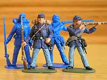 Painted and unpainted American Civil War-era plastic figures by Accurate