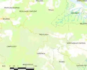 Trévillach is located in the canton of La Vallée de l'Agly and in the arrondissement of Prades.
