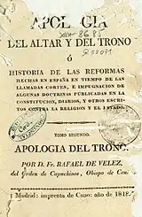 | 1818 | Apologia del altar y del trono[476] | Rafael de Veléz | |||||||||