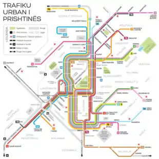 - ↑ "KANË FILLUAR PUNËT NË HARTIMIN E PLANIT TË QËNDRUESHËM TË MOBILITETIT PËR PRISHTINËN. Prishtina Online, 2017". Archived from the original on 15 September 2018. Retrieved 15 September 2018.