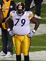 Essex was selected in the third round of the 2005 NFL Draft by the Pittsburgh Steelers.[5] He signed a $1.385 million three-year contract which included a $460,000 signing bonus.[6] After being held out of action through the first nine games of his rookie season,[7] he started at left tackle in four games in place of an injured Marvel Smith.[8] The Steelers' 2005 season ended with a victory in Super Bowl XL.