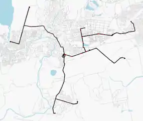 The Kryvyi Rih tramway network is part of the public transport system of Kryvyi Rih, city in Ukraine. The tram network serves as the backbone of the transit system, serving both under the name of the "Kryvyi Rih Rapid Tram" municipal corporation.