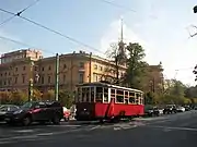MS-1 tram at Dobrolyubova prospect in Saint Petersburg.
