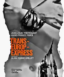 Trans-Europ-Express is a 1966 experimental film written and directed by Alain Robbe-Grillet and starring Jean-Louis Trintignant and Marie-France Pisier. The title refers to the Trans Europ Express, at the time an international rail network in Europe. A frame story shows a creative team devising a film plot during a train journey to Antwerp, intercut with a film-within-the-film about a novice cocaine smuggler and a prostitute that enacts their outline imperfectly.