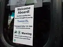A bus sticker showing the name TransdevTSL Shorelink Buses