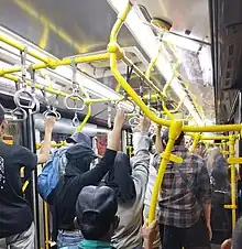 The capacity of each bus varies from 85, 100 to 120 passengers. Single Mercedes-Benz and Hino buses can carry about 85 passengers. Scania, Mercedes-Benz and Volvo Maxi buses can carry 100 passengers, and 120 can be carried by a standard articulated bus. TransJakarta operates Chinese-made Yutong, Zhongtong & Ankai and Swedish-made Scania articulated buses on long and straight corridors.[35]