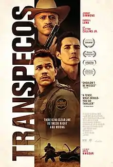 Transpecos is a 2016 American thriller film directed by Greg Kwedar, and written by Kwedar and Clint Bentley. The film stars Johnny Simmons, Gabriel Luna, and Clifton Collins Jr. as border patrol agents who encounter a Mexican drug cartel. The film premiered at South by Southwest on March 13, 2016.[1] The film was released on September 9, 2016, in a limited release and through video on demand by Samuel Goldwyn Films.[2]