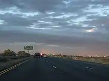 Within the Sacramento region, I-80 follows more of a northeast–southwest direction than a true east–west direction, owing to both the local topography and the orientation of the nearby destination cities (Reno and San Francisco).