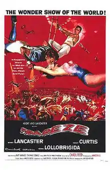 Trapeze is a 1956 American circus film directed by Carol Reed and starring Burt Lancaster, Tony Curtis and Gina Lollobrigida. The film is based on Max Catto's 1950 novel The Killing Frost, with an adapted screenplay written by Liam O'Brien.[3]