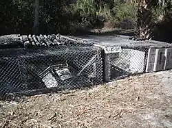 The camp still stands today, with his cabin, a guest cabin, a chickee shelter, docks, a boathouse, and assorted cages from his zoo.[8] There are also fruit trees that he planted, including surinam cherry, Java plum and wild almond.[9]