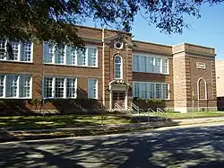 The first iteration of the school was Beauchamp Springs School, built in 1903. It was later renamed after William Barrett Travis, a participant in the Texas Revolution.[5] The first building with the name Travis Elementary was constructed in 1908.[6] The three-story building had 12 classrooms, and construction ended in 1909. The playground space was donated to the city of Houston and was considered to be larger than that of most schools. In 1926 a new campus was constructed. It had a cafeteria, an auditorium, and 12 classrooms.[5]
