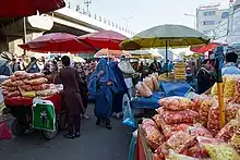 The Taliban promoted the use of the extended family, or zakat system of charity to ensure women should not need to work. However, years of conflict meant that nuclear families often struggled to support themselves let alone aid additional relatives.[2] Qualification for legislation often rested on men, such as food aid, which had to be collected by a male relative. The possibility that a woman may not possess any living male relatives was dismissed by Mullah Ghaus, the acting foreign minister, who said he was surprised at the degree of international attention and concern for such a small percentage of the Afghan population.[22] A Physicians for Human Rights researcher that travelled to Kabul in 1998 described "a city of beggars" filled with "women who had once been teachers and nurses now moving in the streets like ghosts under their enveloping burqas, selling every possession and begging so as to feed their children."[7]: 3